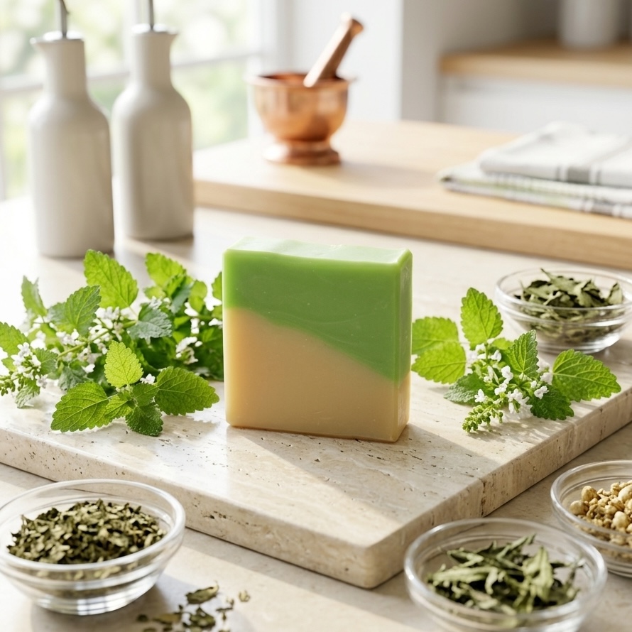 Die Seife hat eine schöne, natürliche Farbe, die die Frische der Melisse widerspiegelt, und ihre Textur ist sanft und cremig sein, was sie ideal für die tägliche Anwendung macht. Durch die handwerkliche Herstellung enthält sie hochwertige, pflegende Inhaltsstoffe, die die Haut sanft reinigen und gleichzeitig mit Feuchtigkeit versorgen.